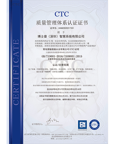 質(zhì)量管理體系認(rèn)證證書(中文)