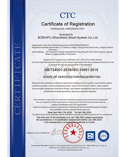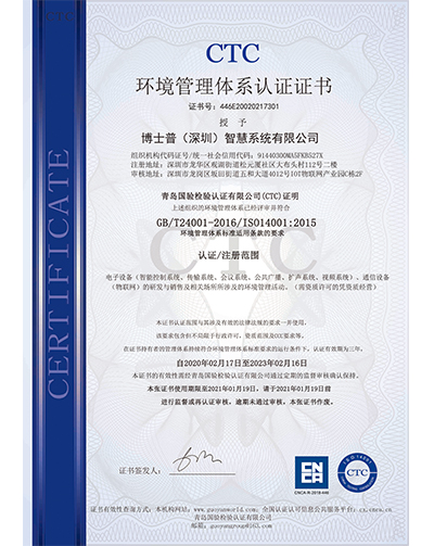 環(huán)境管理體系認(rèn)證證書(中文)