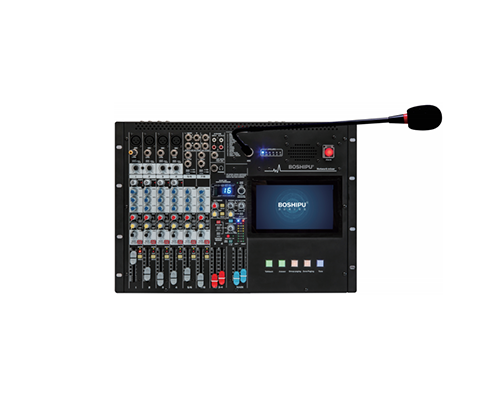 13.具有1路無線話筒輸入接口、1路普通話筒輸入接口、1路輔助線路輸入接口,1路線路混合輸出接口連接有源音源用于擴(kuò)展混合聲音,1路監(jiān)聽耳放輸出接口;
